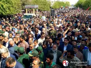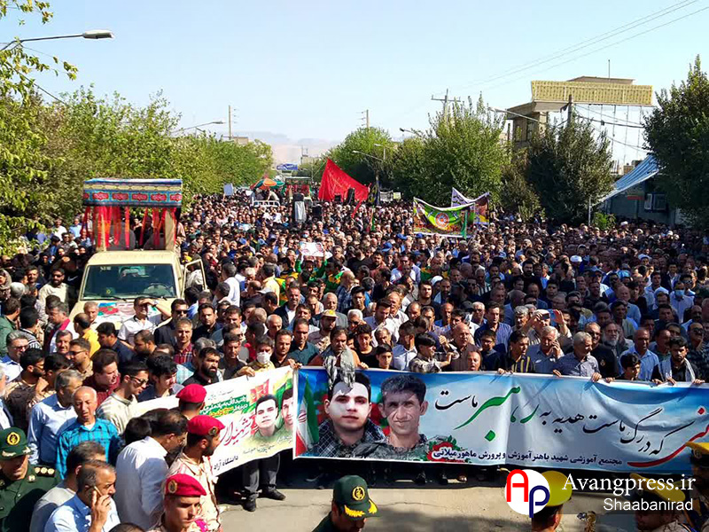 در این مراسم پیکر مطهر شهیدان “یاسر شجاعیان” و “پوریا خوشنام” با حضور جمعی از مسئولان و مردم در این شهرستان تشییع شد.