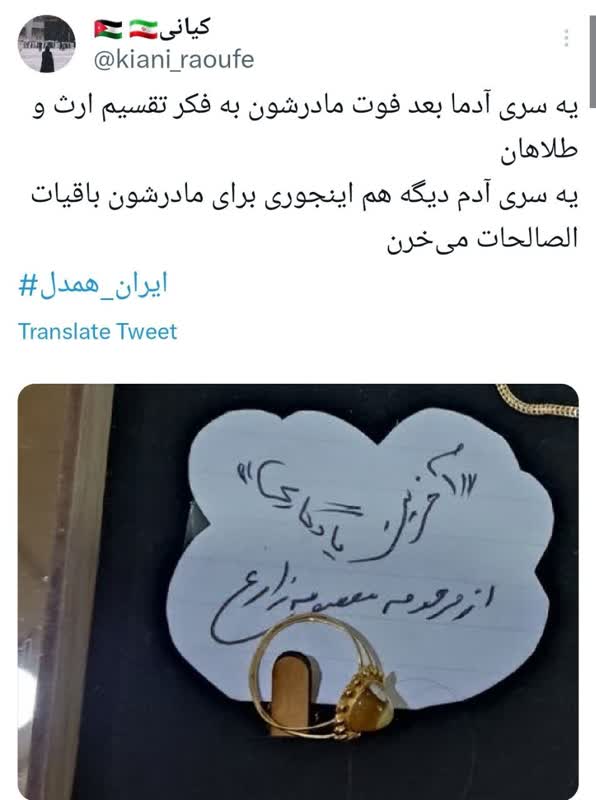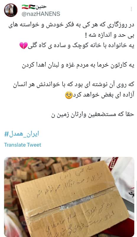 به گزارش آونگ پرس ، روایت هایی از جمله تهیه بیش از ۱۰۰۰کلاه و هزار دست لباس گرم توسط مادران ایلامی، قطعه طلایی که تنها دارایی یک زندگی مشترک ۱۵ ساله بود، پیرزنی که روی یک جعبه خرمای اهدایی خود نوشته بود “اسرائیل از صفحه روزگار محو خواهد شد”، دو قلوهای ۱۰ ساله ای که النگوهای خود را اهدا کرده بوند یا دختری که آخرین یادگاری مادرش را یک انگشتر بود را اهدا کرد..