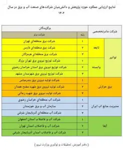 وی با بیان اینکه وزارت نیرو اجرای «آئیننامه حمایت از تولید، دانشبنیان و فناور و اشتغالآفرین در صنعت آب و برق» را در دستور کار خود دارد، افزود: در این راستا معاونت سرمایه انسانی، تحقیقات و فناوری اطلاعات شرکتهای زیرمجموعه شرکتهای مادرتخصصی را در خصوص اجرای این آئیننامه و همچنین انجام فعالیتهای حوزه پژوهش و فناوری در سال ۱۴۰۲ ارزیابی و رتبهبندی نموده که برق منطقهای فارس پس از تهران دوم شد.